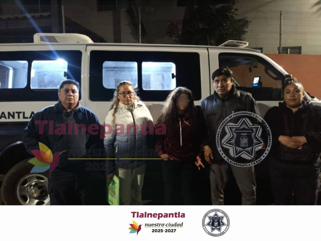 Tlalnepantla, Méx.- Gracias a la rápida acción de personal adscrito al departamento de Búsqueda de Personas Desaparecidas de la Comisaría General de Proximidad y Seguridad de Tlalnepantla, fue localizada una menor de 16 años de edad y reintegrada a su familia.