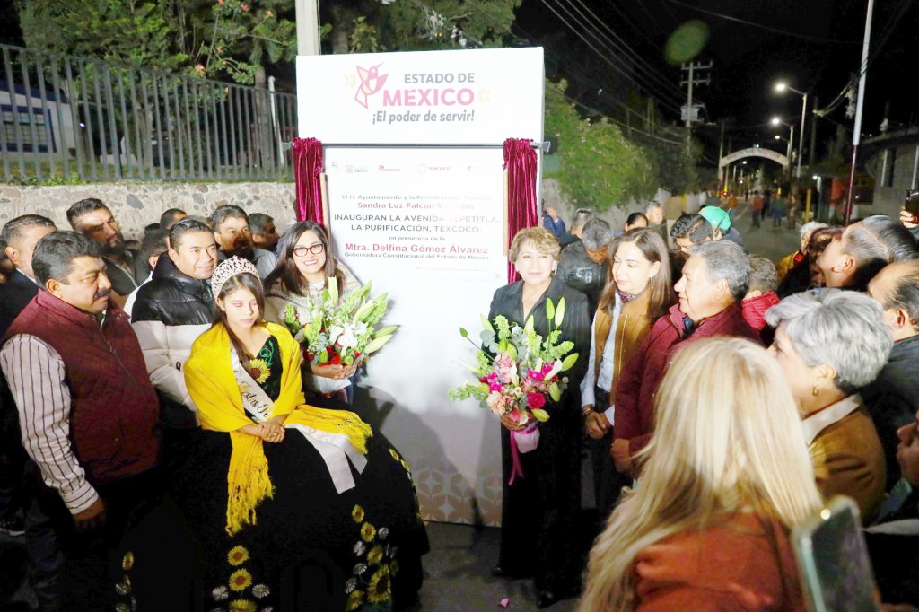 Texcoco, Méx.- En su cuarta gira de trabajo por este municipio de Texcoco, en lo que va de su administración, la Maestra Delfina Gómez Álvarez, Gobernadora del Estado de México entregó la rehabilitación de 3 kilómetros de la avenida Tepetitla, que beneficiará a 5 mil 500 habitantes de la comunidad al mejorar la conectividad y su calidad de vida.
