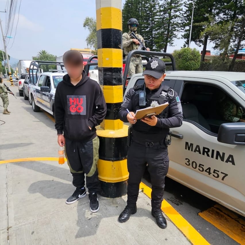 Efectivos municipales y Marina trasladan a penal a banda dedicada a robar carros.