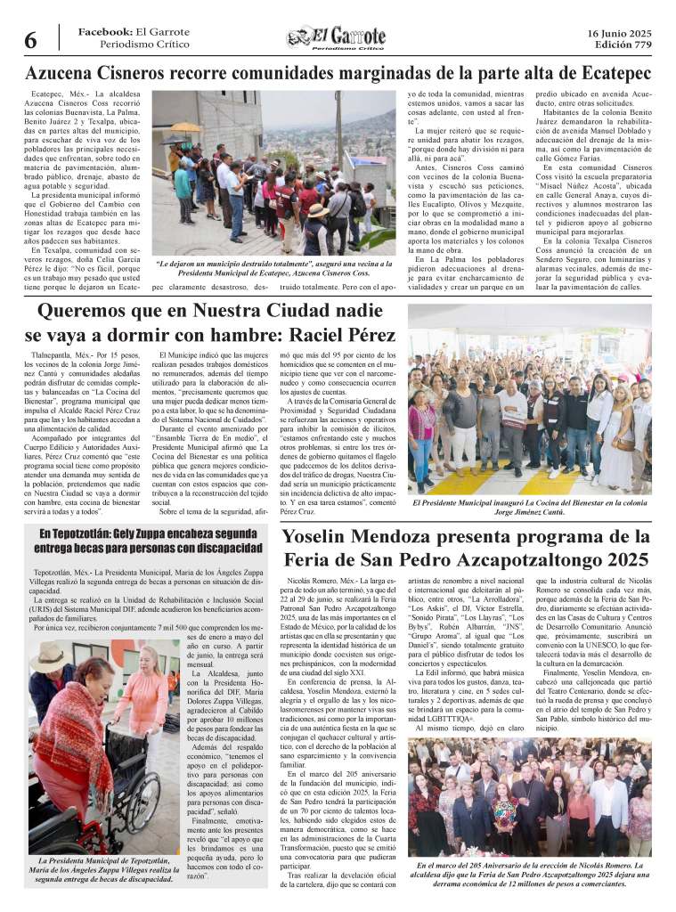 “Los pueblos no pueden ser espacios de delitos, tienen que ser espacios de paz y de tranquilidad. Los pueblos son, por supuesto, nuestra ancla principal de identidad, de historia y tienen que volver a ser lo que eran antes. Ecatepec debe ser el ejemplo de todas nuestras comunidades, de lo que debe ser un pueblo organizado, tranquilo y con identidades a favor de la familia y de la paz”, refirió.