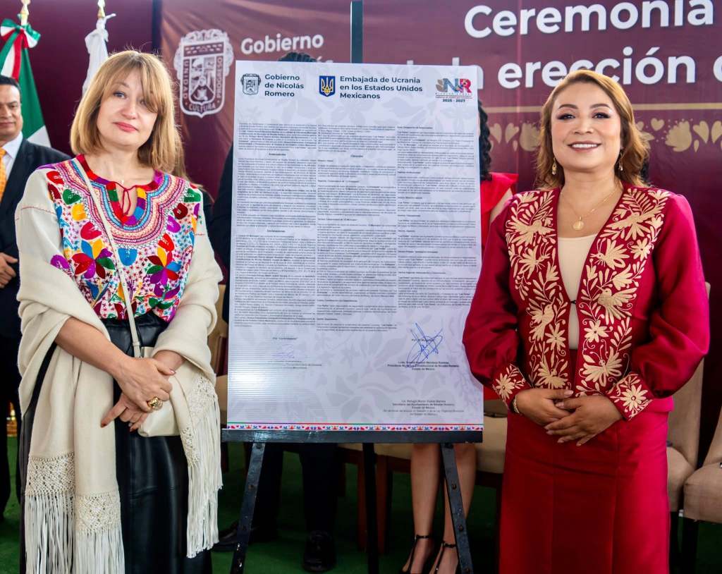 Ante Oksana Dramarétska, Embajadora Extraordinaria y Plenipotenciaria de la República de Ucrania en México, con quien suscribió un convenio de colaboración histórico para el municipio, refrendó su compromiso “con la transformación profunda que exige nuestro tiempo”.