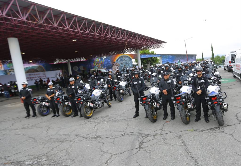 Ecatepec, Méx.- La alcaldesa Azucena Cisneros Coss entregó 70 nuevas motopatrullas y tres drones de alta tecnología para fortalecer a la policía de proximidad y presentó el grupo de Monitores Viales que recorrerán el municipio para brindar asistencia en emergencias, reportar afectaciones por lluvias al operativo Tormenta e informar tres veces al día a la población sobre vialidad a través de Facebook.