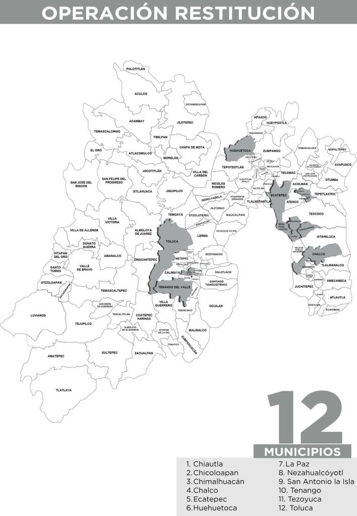 Operación “Restitución” forma parte de la “Estrategia para la Restitución de la Propiedad”, impulsada desde la Mesa de Coordinación para la Construcción de la Paz, que en la entidad encabeza la Gobernadora Delfina Gómez Álvarez, en sus acciones participan la DEFENSA, MARINA, GN, así como del Gobierno del Estado de México a través de la SSEM.