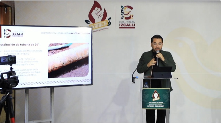 Cuautitlán Izcalli, Méx.- En su conferencia de prensa semanal, el presidente municipal de Cuautitlán Izcalli, Daniel Serrano, informó que fueron concluidos antes de los previsto los trabajos hidráulicos en Av. Constitución, con lo cual fue posible disminuir la intermitencia en el suministro de agua de 72 a 48 horas, en beneficio de más de 20 colonias del centro y sur del municipio.