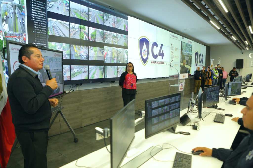Ecatepec, Méx.- La alcaldesa Azucena Cisneros Coss presentó el C4 del Agua para Ecatepec, respaldado con la tecnología del C7i de la policía municipal para atender en tiempo real encharcamientos e inundaciones antes de que se vuelvan tragedias, además de detectar socavones y prevenir el desperdicio y robo del líquido.