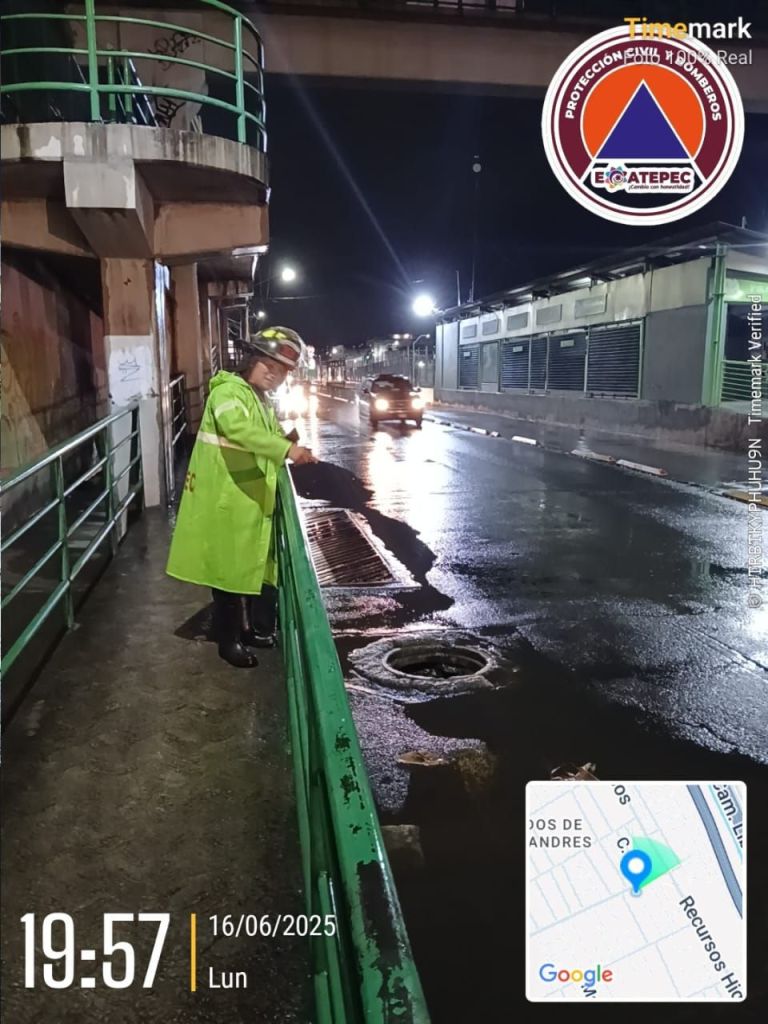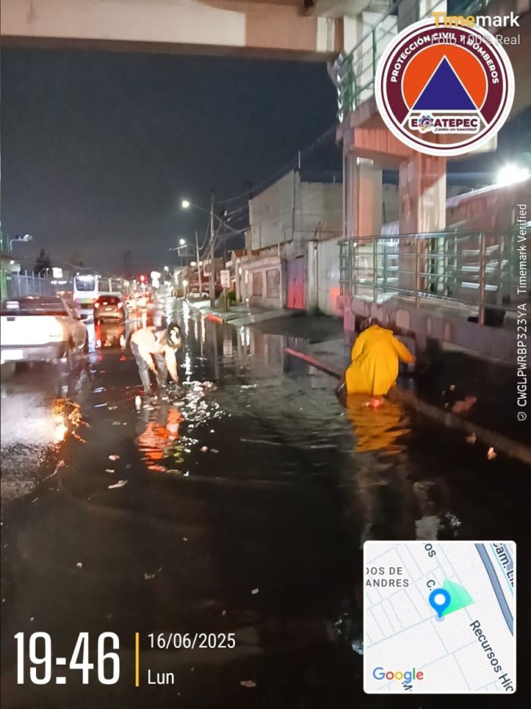Ecatepec, Méx.- Tras la lluvia que se registró la tarde de hoy se activó el C4 del Agua, que detectó encharcamientos en avenidas de Ecatepec, por lo que se desplegó el operativo Tormenta, cuyos integrantes en minutos realizaron limpieza y desazolve de las vialidades afectadas. La tarde-noche de este lunes las videocámaras del C4 del Agua detectaron tres puntos afectados por la lluvia, por lo que se implementó el operativo Tormenta. Uno de los sitios fue en el bajo puente de la autopista México-Pachuca conocido como La Palma, en San Pedro Xalostoc, donde se presentó un tirante de 30 centímetros y un espejo de 50 metros, sin incidentes graves. Otro de los puntos donde el agua se encharcó fue en vía Morelos, a la altura de la fábrica La Costeña, colonia Santa María Tulpetlac, donde se originó un espejo de 100 metros y afectó momentáneamente la movilidad vehicular. El C4 del Agua detectó también que en avenida Nacional el líquido que escurrió de la parte alta de Ciudad Cuauhtémoc encharcó uno de los dos carriles de la vía, lo que afectó la circulación de vehículos. Inmediatamente arribaron a los puntos afectados las cuadrillas del operativo Tormenta, que realizaron la limpieza de coladores y el desazolve de la red de drenaje para desalojar el agua. En el citado operativo participa personal de las direcciones del organismo de agua Sapase, Obras Públicas, Servicios Públicos, Protección Civil y Bomberos, y Seguridad Ciudadana y Tránsito, que efectuaron recorridos por las zonas afectadas. Gracias a los trabajos de limpieza y del operativo Rastrillo Social, este último que encabeza la presidenta municipal Azucena Cisneros Coss, se han mitigado las inundaciones y las afectaciones han sido mínimas, en comparación con lo ocurrido en años anteriores. Autoridades de Ecatepec exhortaron a la población a no tirar basura en la vía pública para evitar colapsos en las redes de drenaje, cárcamos y coladeras.