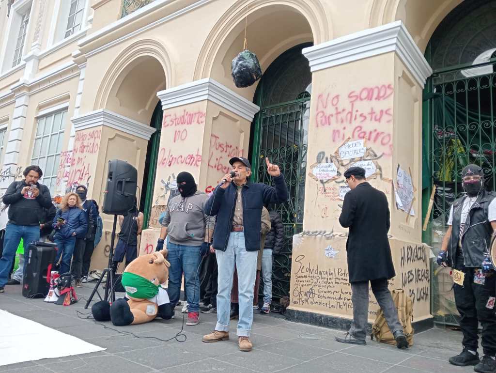 Las y los universitarios en huelga y resistencia puntualizaron: el presupuesto de la UAEM (que es dinero del pueblo de México), es suficiente para que esta universidad sea verdaderamente pública y gratuita. Lo que ha sucedido a lo largo de su historia, es que los gobernadores priistas del estado de México, convirtieron a la UAEM en su mina de oro con la que financiaron proyectos políticos y se enriquecieron con la ayuda de rectores títeres que a lo largo de muchos años lograron que la UAEM quedara en ruinas, esto tiene que cambiar y lo estamos haciendo los y las estudiantes”.