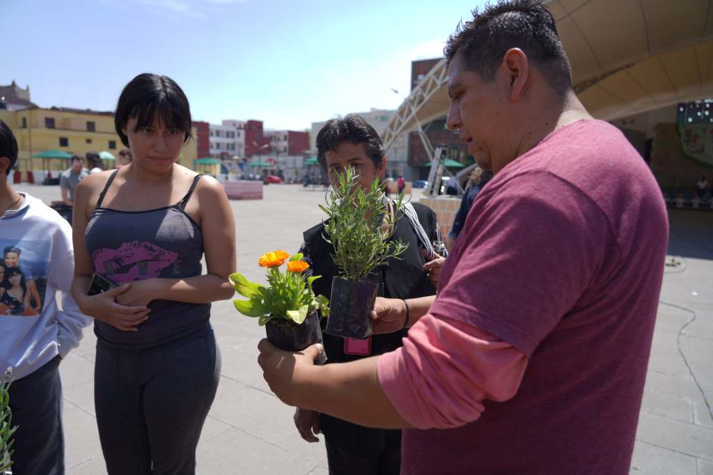 Se reciben residuos sólidos como plásticos, papel vidrio, latas de aluminio y hojalata, entre otros; a cambio los participantes reciben una planta para mejorar el medio ambiente.