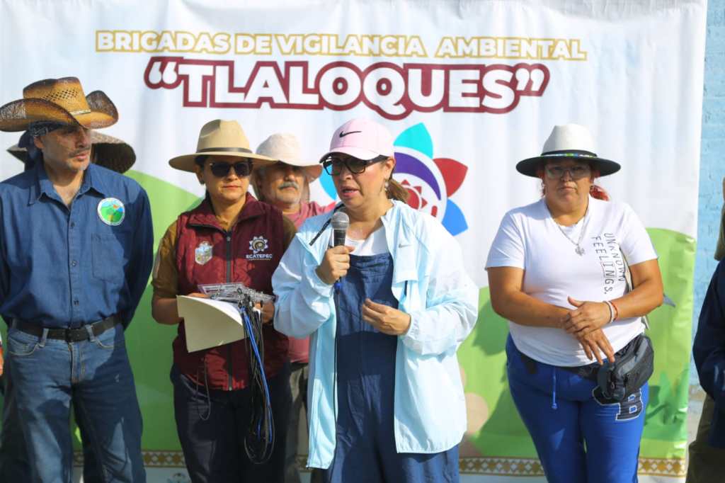 Ecatepec, Méx.- A un costado de la barranca de La Joya donde se retiraron toneladas de basura, la presidenta municipal Azucena Cisneros Coss entregó los primeros 15 gafetes a integrantes de la Brigada de Vigilancia Ambiental “Tlaloque”, quienes se encargarán de cuidar las barrancas, luego de los trabajos de limpieza y saneamiento en busca de convertirlas en espacios verdes para el hábitat de flora y fauna de la zona.
