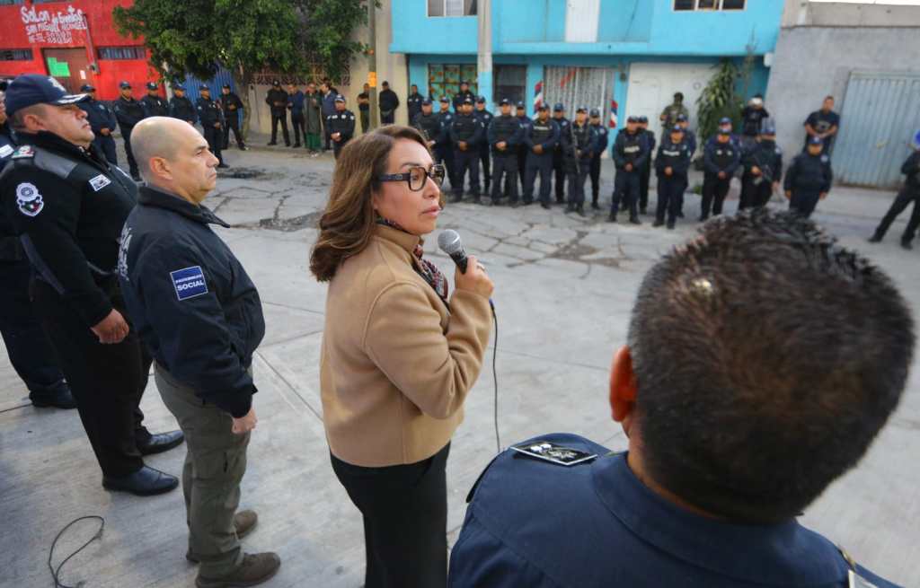En el Módulo de Seguridad ubicado en la calle 113 y avenida San Andrés, la primera presidenta municipal de Ecatepec recordó a los policías “aquí viven sus hijos, aquí viven nuestros hijos, nuestras familias, aquí viven nuestros amigos, aquí viven nuestros vecinos y eso nos debe dar un aliciente pleno todos los días para salir a la calle y ayudar a la paz y a la tranquilidad que tanto le hace falta Ecatepec”.