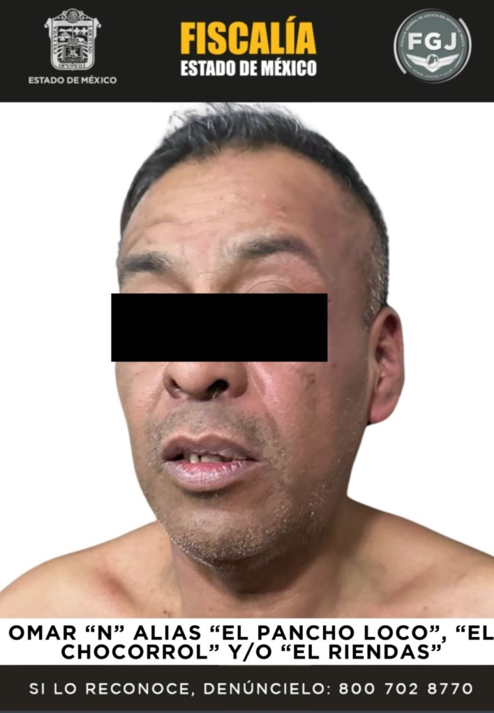 Toluca, Méx.- Como parte de actos de investigación e inteligencia, la Fiscalía General de Justicia del Estado de México detuvo a Omar “N” y/o Tomás Alejandro “N” y/o Erik “N”, alias “Pancho Loco”, “El Chocorrol” y/o “El Riendas”, líder de un grupo delictivo de “sicarios” con presencia en municipios del Valle de México.