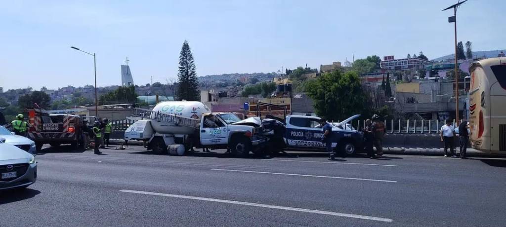 El incidente se registró en el kilómetro 18 de la autopista citada, en dirección a San Cristóbal, cuando una pipa repartidora de gas LP de 5 mil 800 litros, al 40 por ciento de su capacidad, se impactó contra el vehículo de seguridad con número económico RG3-051 y este a su vez contra un autobús de la Línea Primera Plus, con número económico 5294, sin pasajeros.
