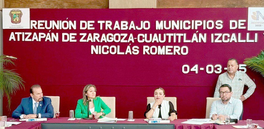 Nicolás Romero, Méx.- Al fungir como anfitriona de una Reunión de Trabajo con los Municipios de Atizapán de Zaragoza y Cuautitlán Izcalli, la Alcaldesa, Yoselin Mendoza, destacó la importancia de sumar esfuerzos más allá de ideologías o colores, para el bienestar de la ciudadanía que habita en la región, realizando acciones transversales que contribuyan al saneamiento de los cuerpos de agua, como las presas El Ángulo y Lago de Guadalupe, toda vez que el vital líquido es un recurso estratégico y de seguridad nacional.