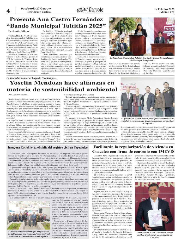 Finalmente, comento “en la mesa de seguridad tenemos hablamos que se tienen que “blindar” las zonas limítrofes, estamos muy avanzados en el tema de la coordinación interinstitucional, con la Ciudad de México, Nezahualcóyotl, Tlalnepantla, Coacalco, Jaltenco, Tecámac, y la parte de Acolman, desde campaña estamos nuestro trabajando en la creación de una mesa interinstitucional, con todos los municipios con que colindamos”. Concluyó, la mandataria municipal de Ecatepec, Azucena Cisneros Coss.