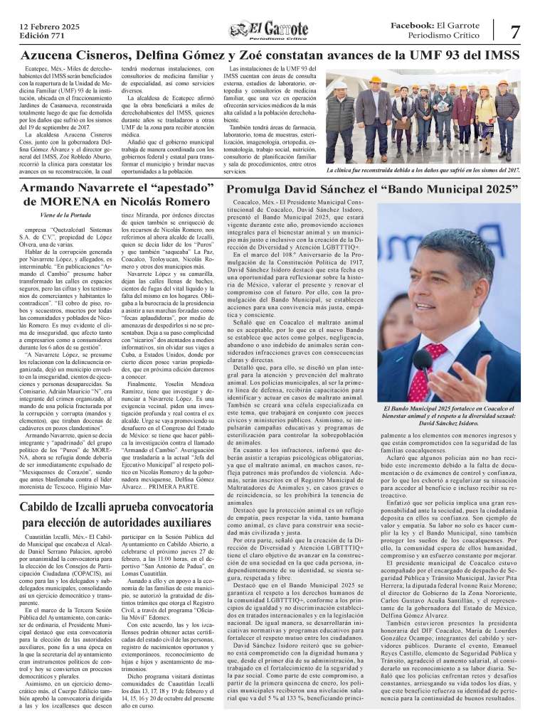 Finalmente, Yoselin Mendoza Ramírez, tiene que investigar y denunciar a Navarrete López. Es una exigencia vecinal, piden una investigación profunda y real contra el ex alcalde. Urge se vaya promoviendo su desafuero en el Congreso del Estado de México: se tiene que hacer pública la investigación contra el llamado “Armando el Cambio”. Averiguación que trasladaría a la actual “Jefa del Ejecutivo Municipal” al respeto político en Nicolás Romero y de la gobernadora mexiquense, Delfina Gómez Álvarez… PRIMERA PARTE.