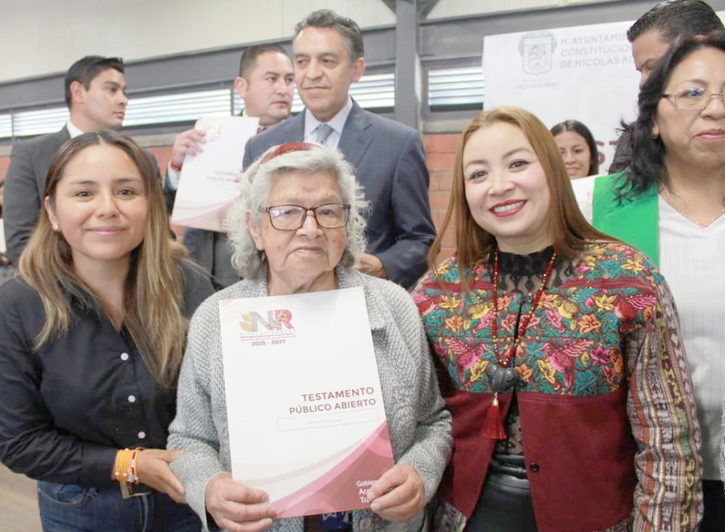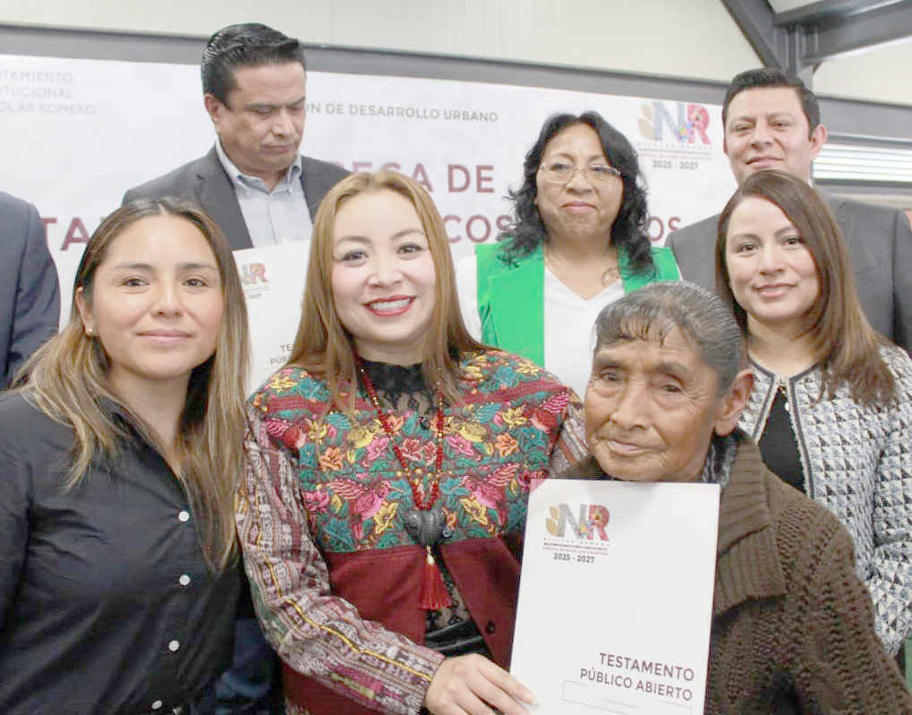 Nicolás Romero, Méx.- Al encabezar la “Entrega de Testamentos Públicos Abiertos”, la alcaldesa, Yoselin Mendoza, afirmó que este documento es un instrumento jurídico fundamental que toda persona debería tramitar, para que el patrimonio que herede brinde certeza y no se convierta en objeto de diferencias entre sus familiares.