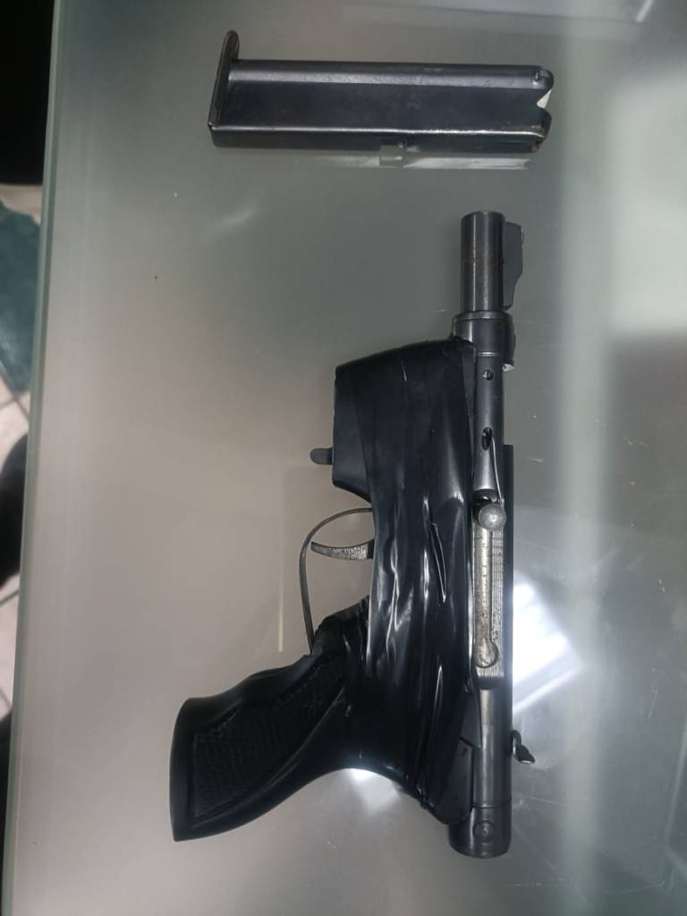 Al descender de la unidad y aproximarse al domicilio, salió el masculino empujando a los uniformados y fue señalado como responsable de la agresión, y al hacerle una inspección le encontraron un arma de fuego en la cintura, por lo que realizaron su inmediata detención y evitaron que alguna de las mujeres saliera lesionada.