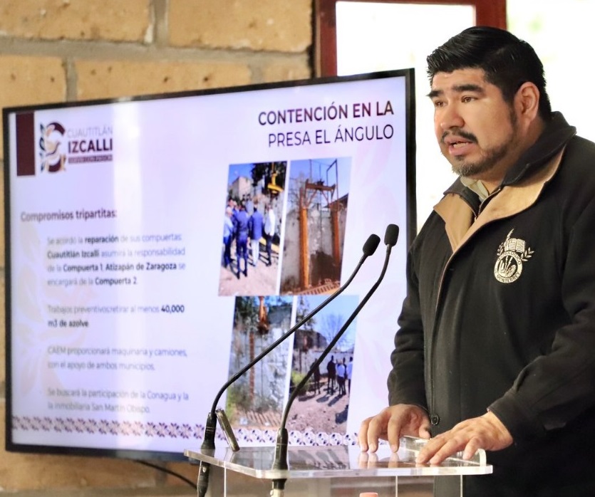 Cuautitlán Izcalli, Méx.- Durante la conferencia del Presidente Municipal de Cuautitlán Izcalli Daniel Serrano, el director general de Operagua, Christian Laguna Reyes, dio a conocer los acuerdos alcanzados con el organismo operador de agua potable, alcantarillado y saneamiento de Atizapán de Zaragoza (SAPASA) y la Comisión del Agua del Estado de México (CAEM) respecto a la Presa El Ángulo.