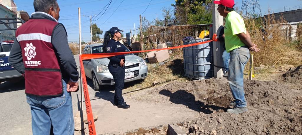 En la calle 8, de la colonia Julia Marín, vecinos detectaron que se había abierto una zanja hasta llegar al tubo de agua potable, que tiene un diámetro aproximado de 6 pulgadas, donde se conectó una manguera de color negro, de más de 3 metros de largo con una llave, que traspasaba la banqueta hasta llegar a un terreno particular.