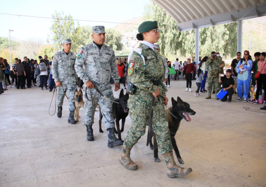 Además, a la jornada se sumaron uniformados de la Policía municipal y estatal con programas de prevención del delito, y contra violencia de género, el Ejército Mexicano y la Guardia Nacional, con el agrupamiento canino que presentó una exhibición que atrajo la atención principalmente de pequeños.