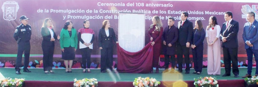 Nicolás Romero, Méx.- Al encabezar la ceremonia del 108 Aniversario de la promulgación de la Constitución Política de los Estados Unidos Mexicanos y de la Promulgación del Bando Municipal 2025 de Nicolás Romero, la Presidenta Municipal Constitucional, Yoselin Mendoza, destacó que dicha norma local se caracteriza por ser humanista e innovadora, ya que por primera ocasión tiene integrado el derecho humano a la paz, con lo que se ha dado un paso histórico en la construcción de un mejor municipio.