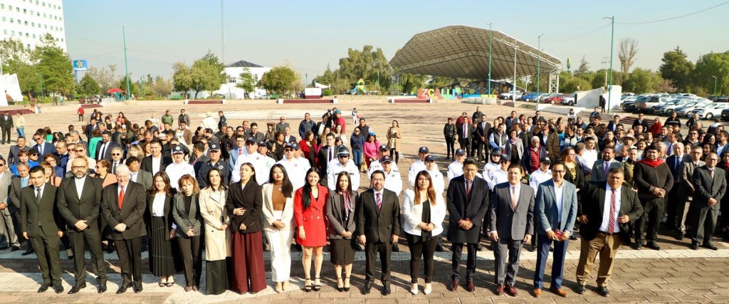 Ante autoridades de las supervisiones educativas, directores educativos, profesoras y profesores, alumnos de los distintos niveles educativos como kínder, primaria, secundaria y nivel medio superior y de la Universidad Mexiquense del Bicentenario; grupos de la edad dorada, efectivos de Seguridad Pública; Protección Civil; así como Autoridades auxiliares, delegados y COPACIS. “todos ellos que participaron en la ceremonia conmemorativa al 108 Aniversario de la Promulgación de la Constitución de los Estados Unidos Mexicanos y divulgación del reformado “Bando Municipal 2025”.