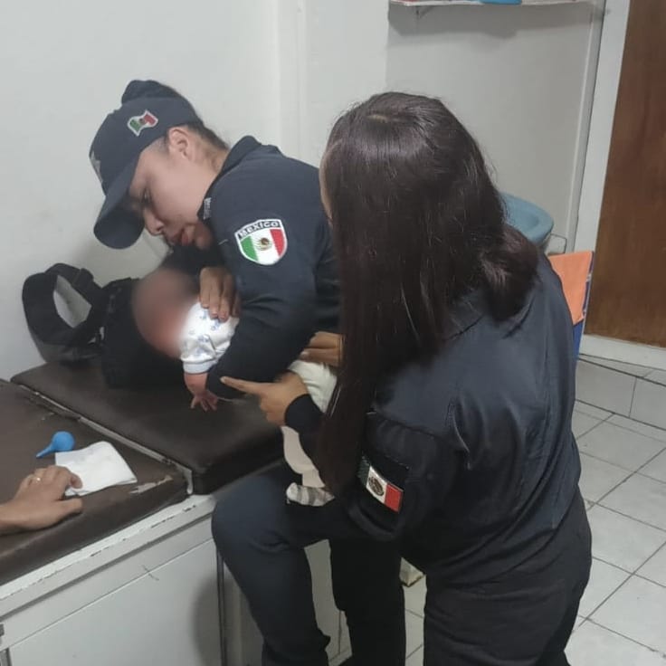 Ecatepec, Méx.- Tras una rápida intervención de proximidad social, elementos del Sector 16 de la policía de Ecatepec atendieron un llamado de auxilio para un bebé de siete días de nacido que presentaba signos de asfixia y cuya vida estaba en peligro, al que brindaron los primeros auxilios y trasladaron de inmediato al hospital Las Américas, donde médicos lo estabilizaron y se encuentra a salvo.