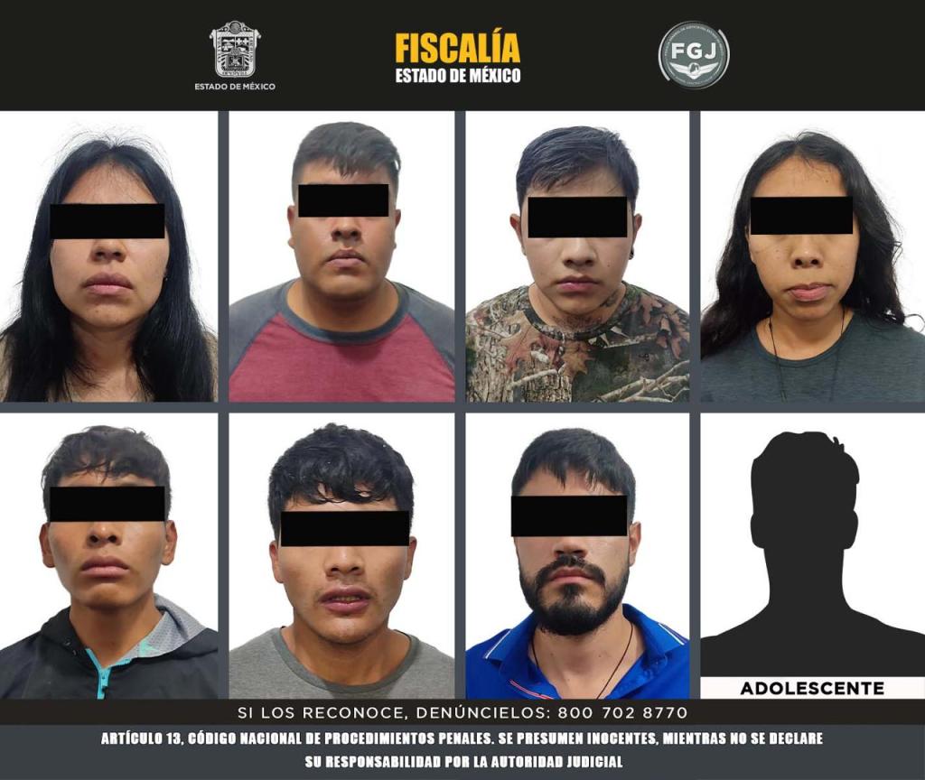 Malinalco, Méx.- En acciones diversas, elementos de la Fiscalía General de Justicia del Estado de México (FGJEM) con apoyo la Secretaría de la Defensa (DEFENSA), Guardia Nacional (GN) y Seguridad Pública estatal (SSEM) lograron la detención de Edson Jesús “N”, Gabriel “N”, Martín Darío “N”, Misael Saturnino “N”, Francisco Javier “N”, Nancy “N”, Jessica “N”, así como un menor de edad, por su probable participación en delitos de alto impacto en la región.