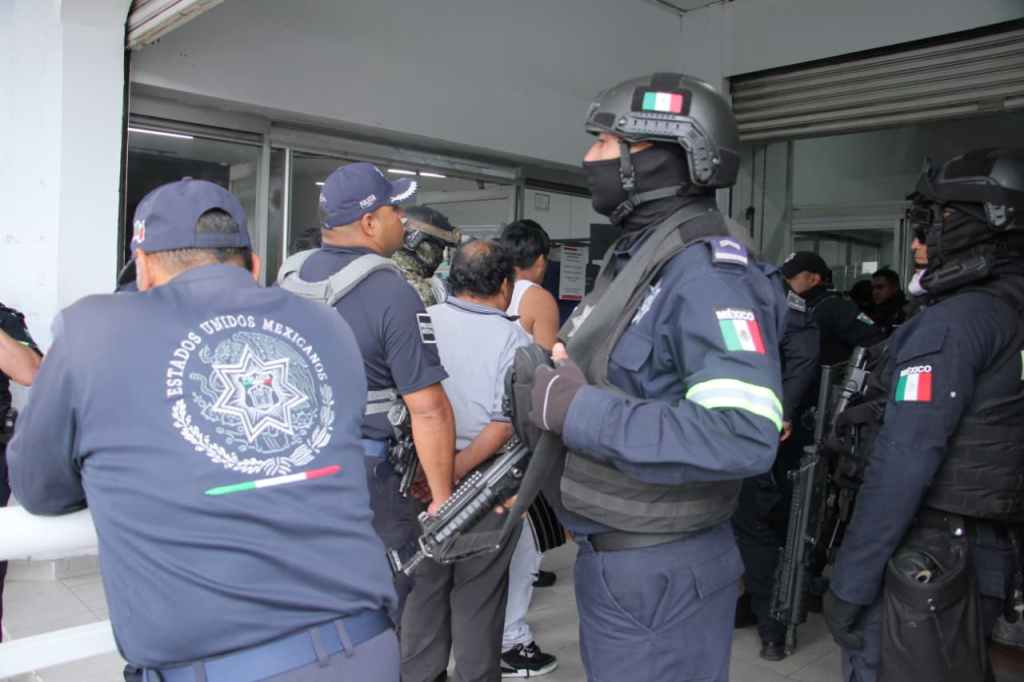 En un despliegue operativo de policías municipales, Sedena, Guardia Nacional y Marina, fueron detenidos Jorge Argenis “N”, de 33 años de edad; Ángel Gabriel “N”, de 23 años; Famer Alberto “N”, de 29; Edgar “N”, de 35, y Mauricio Gabriel “N”, de 18 años.