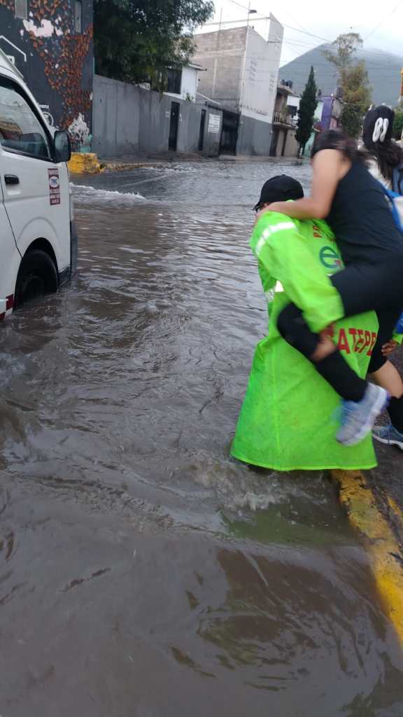 Ecatepec, Méx.- Tras la lluvia que se registró la tarde de hoy cuadrillas del operativo Tormenta se desplegaron en varios puntos del municipio, donde el agua quedó estancada y afectó la circulación de vehículos, así como de usuarios del transporte público.