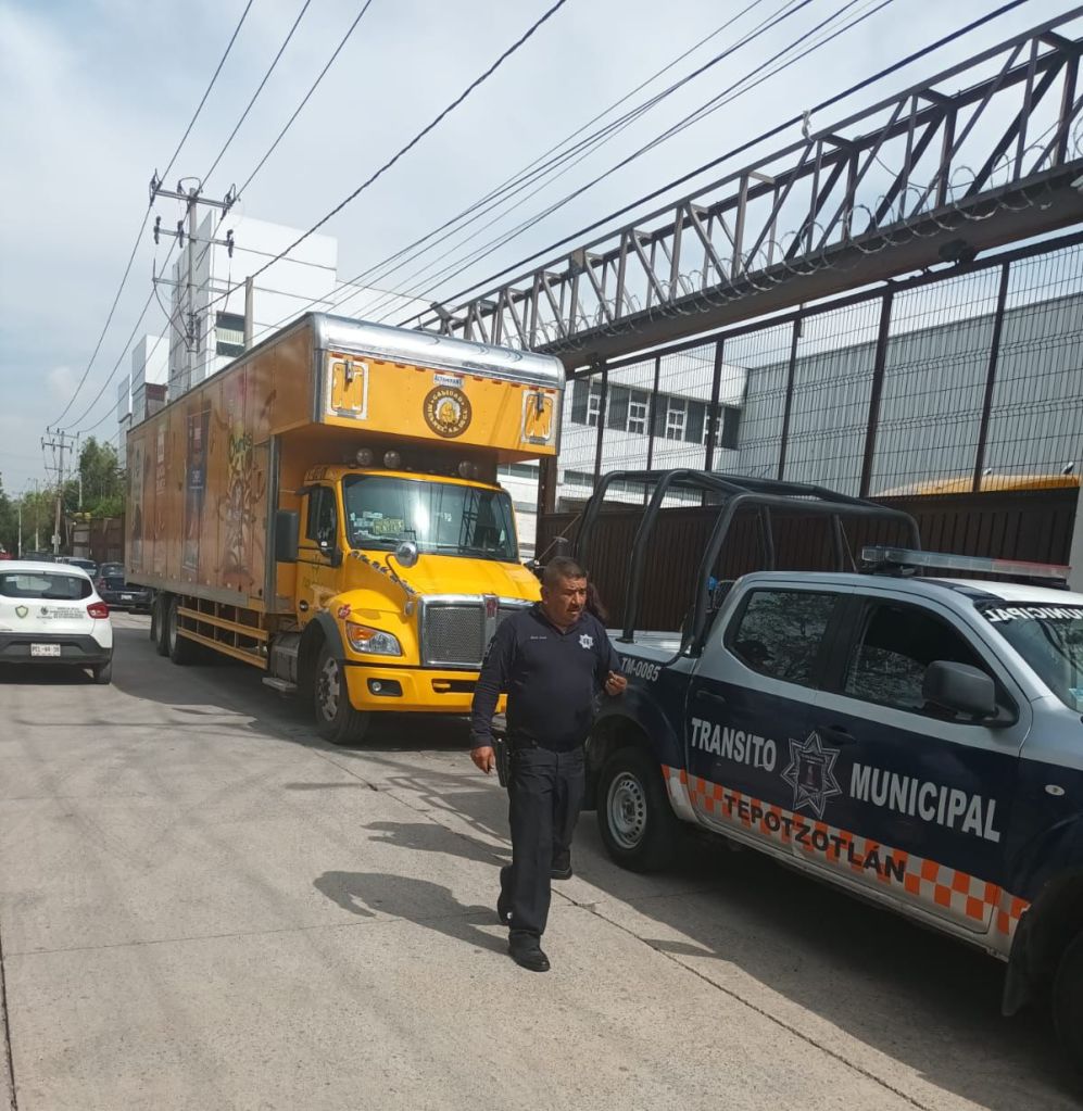 Efectivo operativo por parte del Ayuntamiento de Tepotzotlán para retirar vehículos de empresas de transporte de la vía pública.